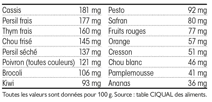 L’orange est-elle la seule à contenir de la vitamine C ? Pas du tout ! D’autres légumes en sont très riches, comme le brocolis par exemple, voir le tableau ci-dessous (source Santé magazine).